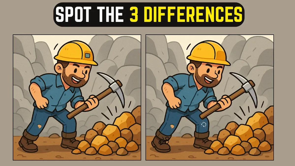 This âSpot the Differenceâ mine worker puzzle proves that even the smallest changes can test your perception. Itâs not about having perfect eyesightâitâs about training your brain to notice the unseen. Whether you spotted all three differences or just one, the key is persistence and focus. Regularly engaging in such challenges helps you stay mentally sharp, improves concentration, and gives a sense of accomplishment. So, next time you come across a puzzle like this, take it as a fun opportunity to strengthen your brain and challenge your observation skills.